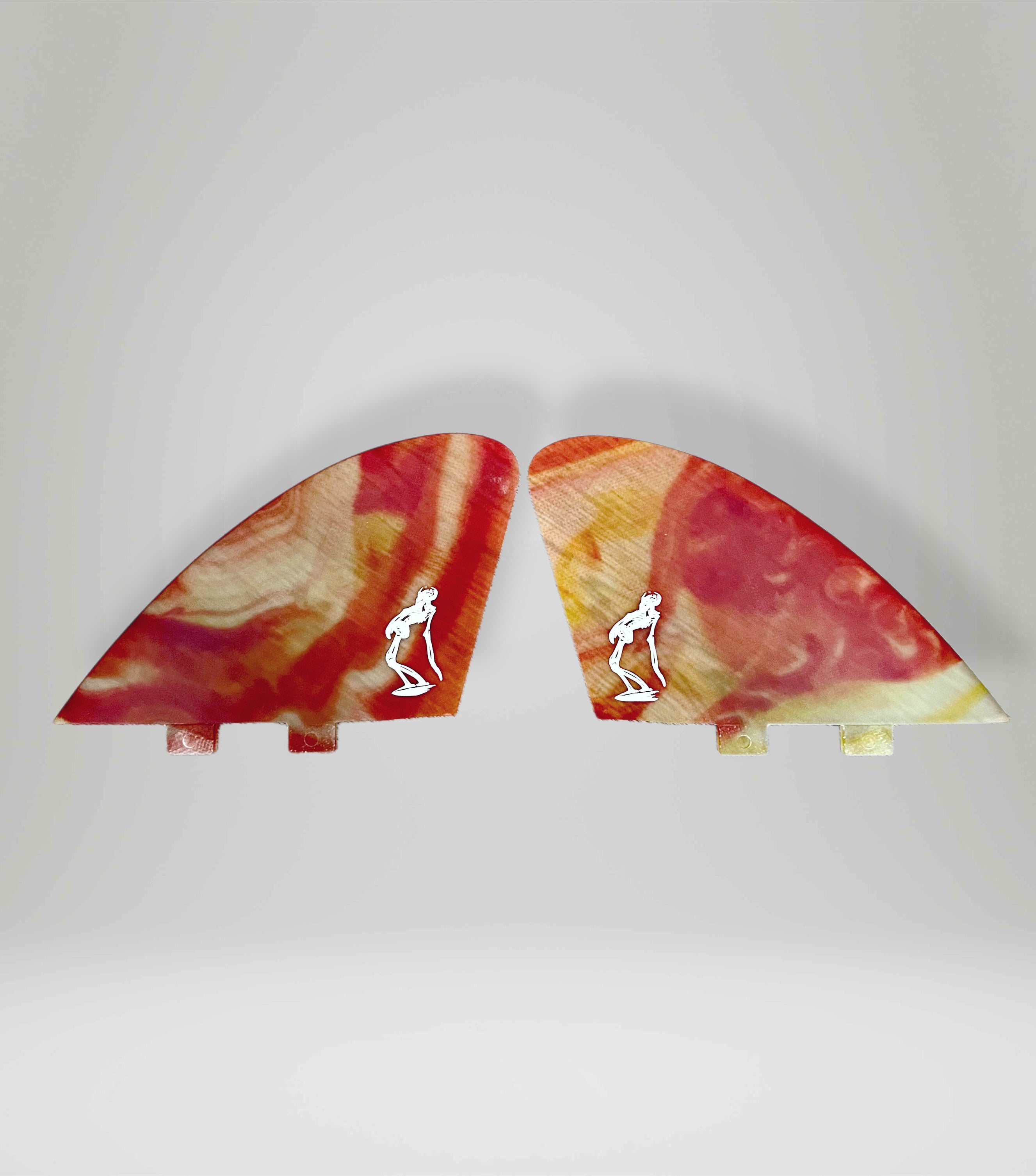 These are one of the best fish template keels you can get. Originally done by Larry Gephardt in Marine Ply, this abstract, double foiled version looks and works great. Built by Fins Unlimited for The Surfboard Rack.