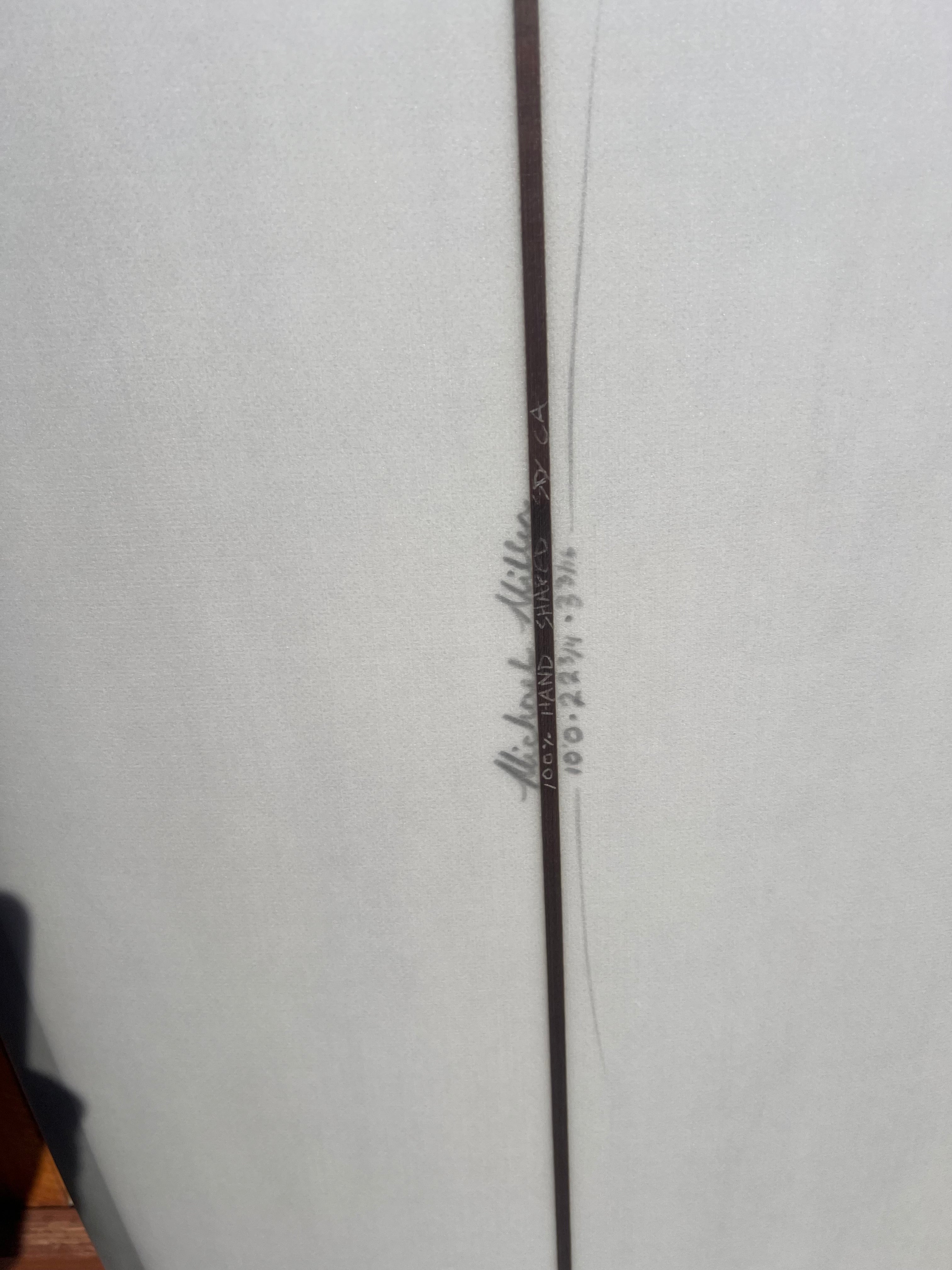 The boards is glassed with a 6+6 deck and 6 bottom. This is a wet-sanded gloss coat, or a "Satin" finish. This gives you the added strength of a gloss but without the high-shine and "slippery in the hands" feeling. It also features beautiful cut-laps and a leash loop for added soul. Board was glassed by Superwolf AKA: Alex Villalobos at Custom Surf Glass, one of Californias finest shops.