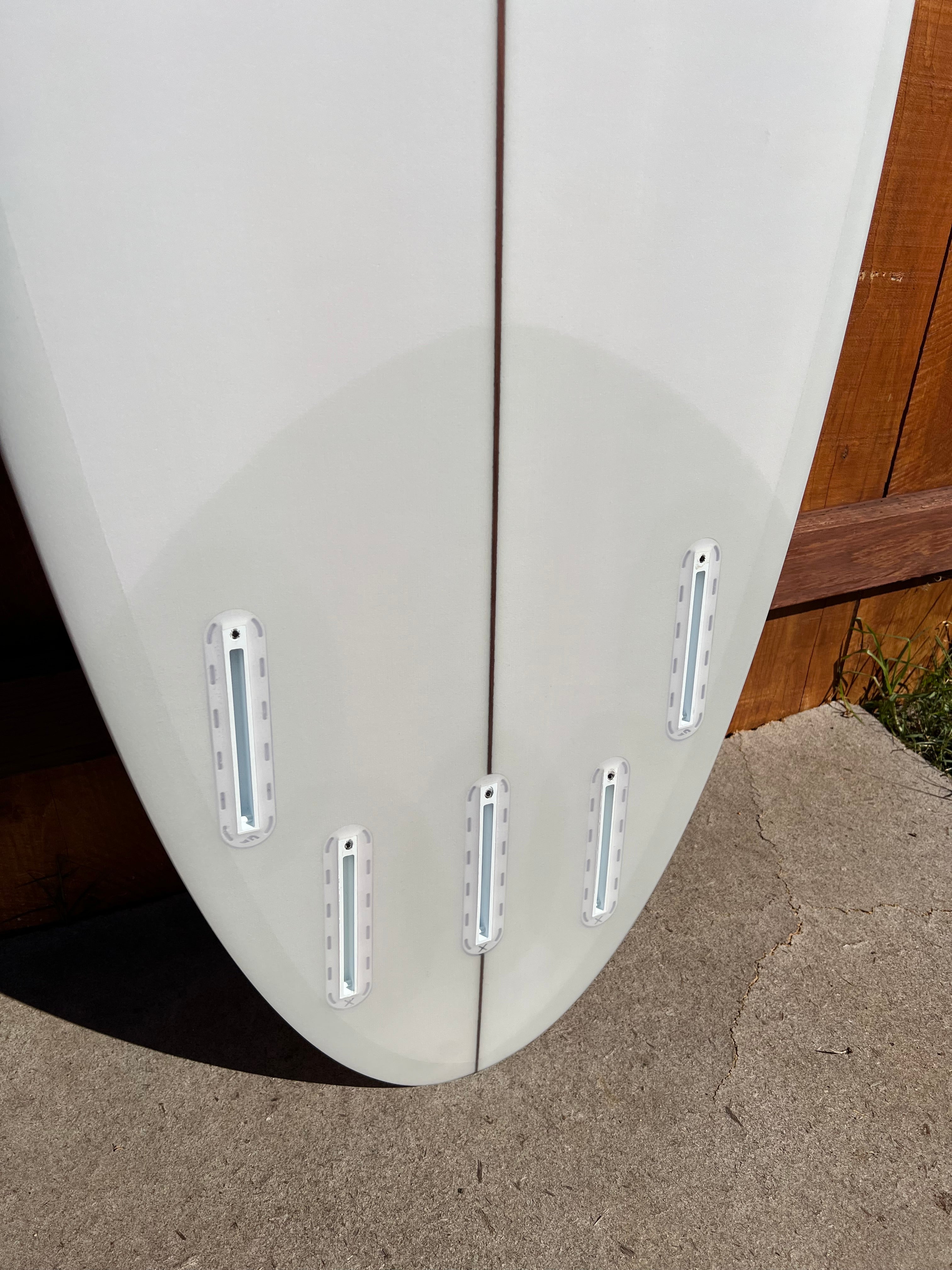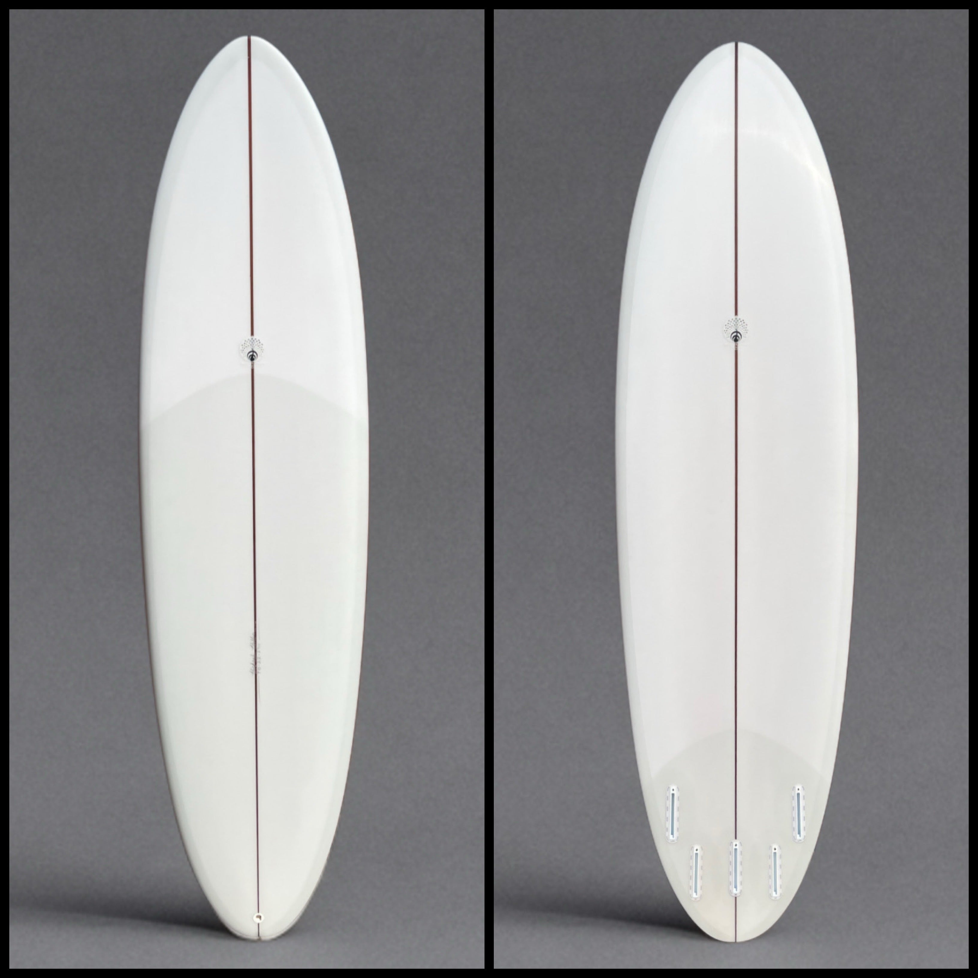This 7' Egg with dark wood wedge stringer is simple, elegant and perfect for almost every condition. This design was invented by Skip Frye in 1968 and has proven itself in waves of all shapes and sizes. This egg comes equipped with 5 Futures boxes so you can try out many different fins and se what works best for you.