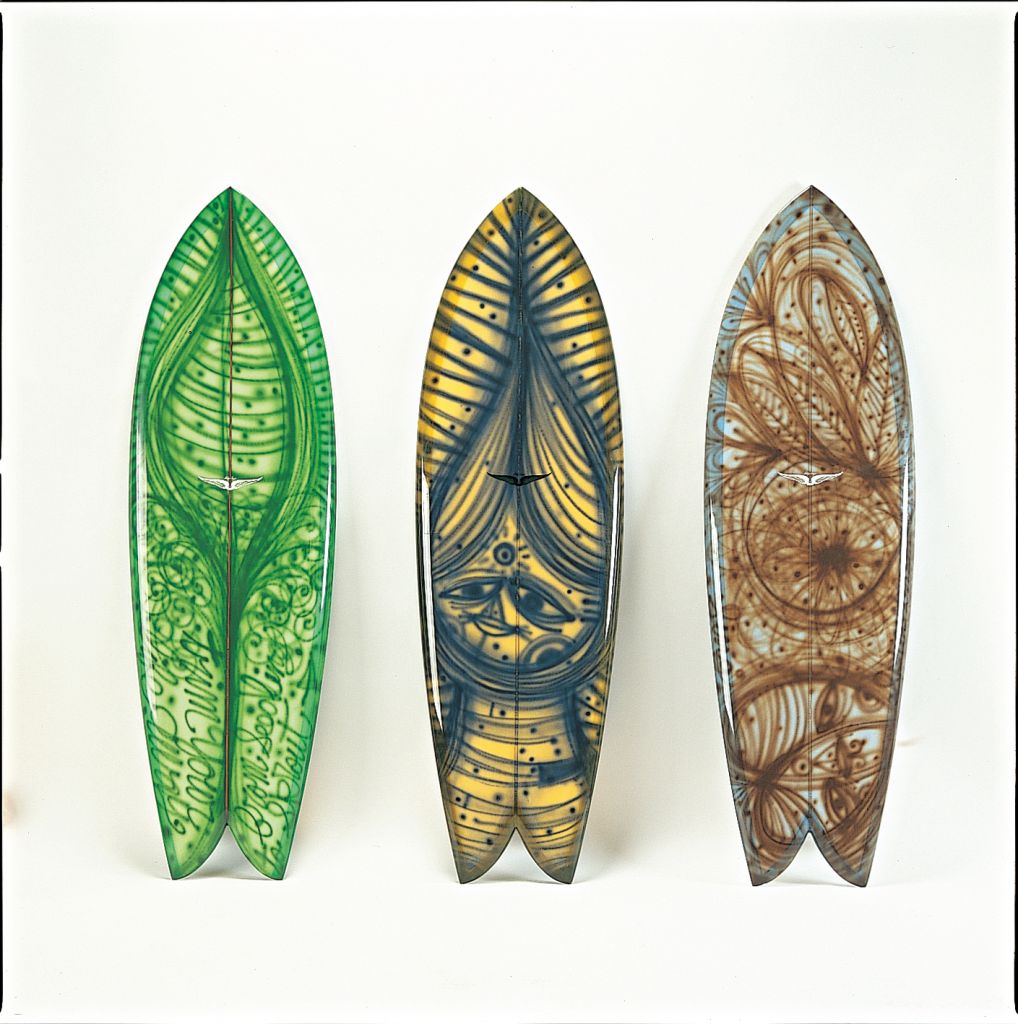 Skip Frye made a few long fish for the film that Thomas painted in his signature style. These are art pieces of the highest order. A Skip Frye long-fish on its own is worthy of display. Pair that with Campbells art, you have a piece of history.